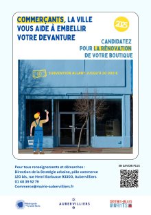 Ainsi, la Ville d’Aubervilliers et la Métropole du Grand Paris proposent un dispositif d’aide à l’amélioration des devantures commerciales du centre-ville. Cet accompagnement consiste en un subventionnement des travaux de requalification des devantures réalisés dans le respect des règlements en vigueur. La subvention s’élève à un montant total de 120 000€, dont une participation de la Métropole du Grand Paris à hauteur de 30 120 euros.