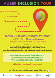 Le mardi 29 mars, de 15 h à 18 h, place de l’Hôtel de Ville, venez rencontrer directement les professionnels et les acteurs présents pour la première édition 2022 de l’Auber Inclusion Tour, consacrée à l’orientation. Au programme : offres d’emploi, conseils, aide à la création d’entreprise…