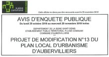 Avis d’enquête publique PLU d’Aubervilliers : modification numéro 13