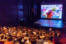 Les retransmissions des matchs de l’Euro 2016 dans la grande salle du théâtre ont progressivement attiré la foule : point d’orgue avec la finale au soir du 11 juillet…