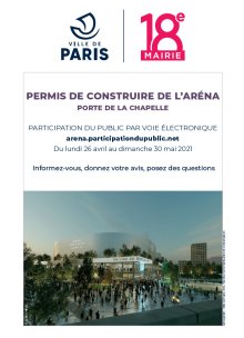 Une participation du public par voie électronique (PPVE) sur le permis de construire de l’Aréna Porte de la Chapelle se déroule du 26 avril au 30 mai 2021.