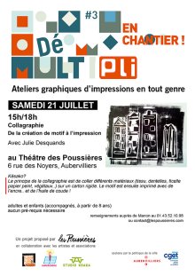 Ateliers graphiques d’impressions en tout genre, samedi 21 juillet, de 15 h à 18 h, au théâtre des Poussières.