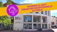 Le bâtiment administratif (31-33, rue de la Commune de Paris) sera exceptionnellement fermé, vendredi 16 août, en raison de travaux au rez-de-chaussée.