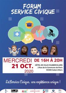 La Ville d’Aubervilliers propose un Forum Service Civique, mercredi 21 octobre, de 16 h à 20 h, à l’Hôtel de Ville.