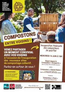 - Je viens à l’inauguration itinérante des 3 premiers sites de compostage de quartier le mercredi 14 juin à 18h au Composteur « Grosperrin » en face de La Poste (166 rue Danielle Casanova).