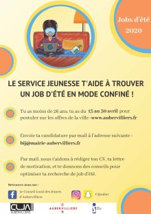 Le service Jeunesse adapte son opération Jobs d’été durant le confinement pour accompagner les jeunes de la ville à trouver un emploi saisonnier en renforçant sa présence en ligne du 13 au 30 avril 2020.