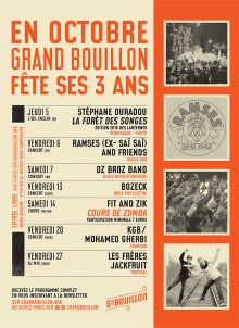 Les 5, 6 et 7 octobre, le Grand Bouillon fête ses 3 ans avec une programmation musicale spéciale « Happy Birthday ».