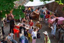 Aux Poussières, on peut assister à des spectacles, à des concerts, des formes sonores, participer à des ateliers, on peut y cuisiner, s’y réunir et faire de belles rencontres, danser, imaginer et créer ensemble.