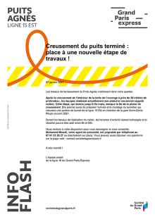 Les travaux de terrassement du Puits Agnès s’achèvent dans votre quartier. Après le creusement de l’intérieur de la boîte de l’ouvrage à près de 30 mètres de profondeur, les équipes réalisent actuellement son plancher souterrain (appelé radier).