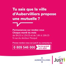 La Ville d’Aubervilliers s’est associée à la Mutuelle Just afin de vous offrir l’accès à une mutuelle communale solidaire et avantageuse.