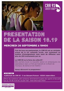 C’est reparti pour une nouvelle saison de festivités au CRR 93 ! Mercredi 26 septembre, 19 h, à l’auditorium.