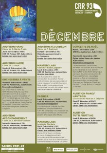 Le Conservatoire à rayonnement régional d’Aubervilliers - La Courneuve propose, pendant le mois de décembre de la saison 2021-2022, une programmation riche et variée.