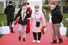 Karine Franclet, Marie-Pascale Rémy, adjointe au maire en charge des Seniors, Damien Bidal, adjoint au maire en charge des Affaires sociales, et Samuel Martin, 9e adjoint au maire, étaient présents le jeudi 16 décembre 2020 à la remise des colis de Noël aux Seniors qui se déroule jusqu’au 17 décembre 2020, au square Stalingrad.