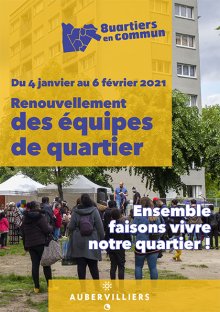 Du 4 janvier au 6 février 2021, la Ville d’Aubervilliers renouvelle ses équipes de quartier. Ensemble, faisons vivre nos quartiers.