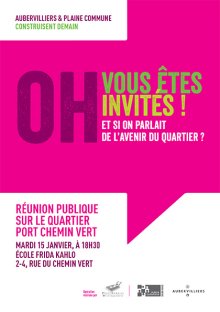 Patrick BRAOUEZEC, Président de Plaine Commune et Plaine Commune Développement, ont le plaisir de vous convier à la réunion publique sur le quartier Port Chemin Vert.