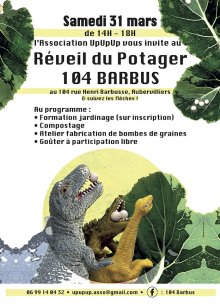 L’association UpUpUp organise ce samedi 31 Mars, de 14 h à 18 h, au potager sur la dalle du 104 rue Henri Barbusse, des formations de jardinage, accompagnées d’un atelier de fabrication de bombes de graines.