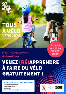 Apprendre ou réapprendre à faire du vélo en famille, c’est possible avec Tous à Vélo vers 2024, un dispositif mis en place dans le cadre de lʼaccueil des Jeux de Paris 2024 sur le territoire de Plaine Commune !