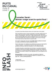Le projet du Grand Paris Express avance à bon rythme dans votre quartier. Parti à l’été 2020 du Puits du Canal à Aubervilliers, le tunnelier Sarah poursuit sa route et vient de traverser l’enceinte souterraine de la future gare Saint-Denis Pleyel.