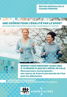 La Direction des sports d’Aubervilliers propose, mercredi 18 mai 2022, une nouvelle course féminine à travers la ville contre le harcèlement de rue que certaines coureuses peuvent subir pendant leur jogging. Deux parcours sont proposés : une course de 6 km et une marche de 3 km pour les débutantes.