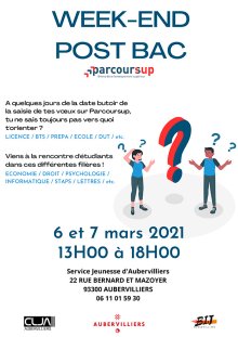 A quelques jours de la date butoir de la saisie de tes vœux sur Parcoursup, tu ne sais toujours pas vers quoi t’orienter ? Viens à la rencontre d’étudiants de différentes filières, les samedi 6 et dimanche 7 mars au service Jeunesse.